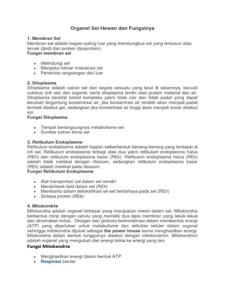 Organel Sel Hewan Dan Fungsinya Artikelsiana