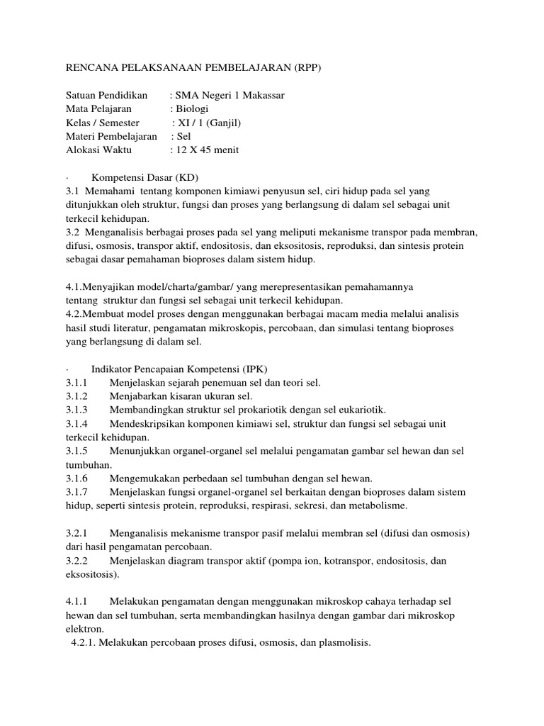 Rpp Sel 1 Kelas Xi Kurikulum 2013