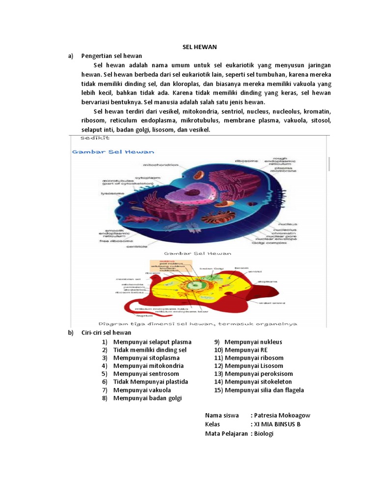 Penjelasan Sel Hewan Dan Keterangannya Sridianti Com