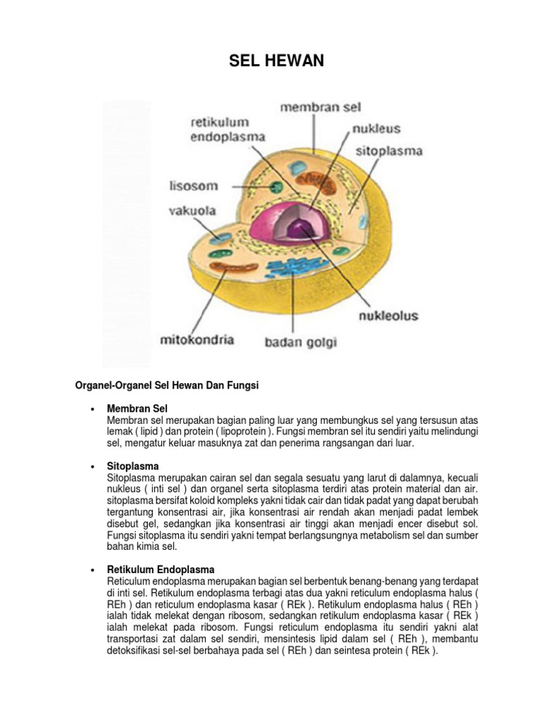 Sel Hewan Struktur Fungsi Organel Sel Hewan Sel Hewan Dan Sel