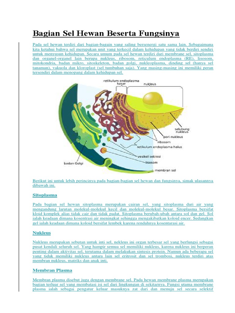 Bagian Sel Hewan Dan Fungsinya