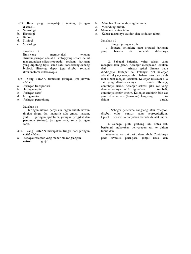 Uji Kompetensi Biologi Jaringan Hewan Bab 3