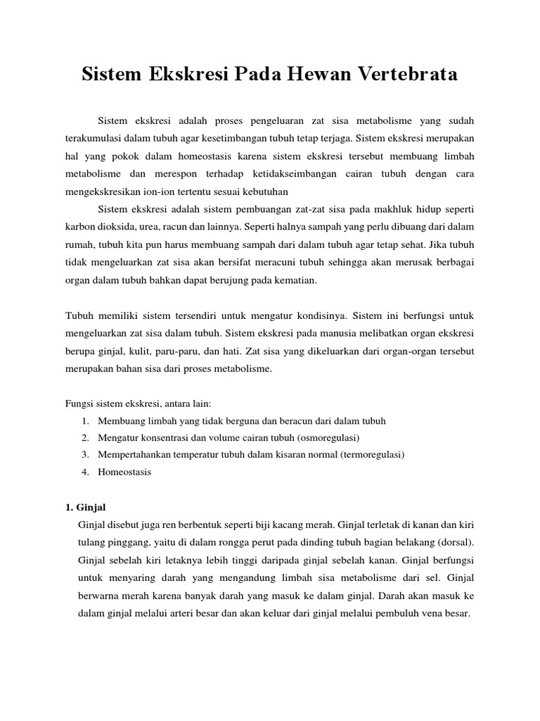 Sistem Ekskresi Hewan Vertebrata Dan Avertebrata Artikelsiana