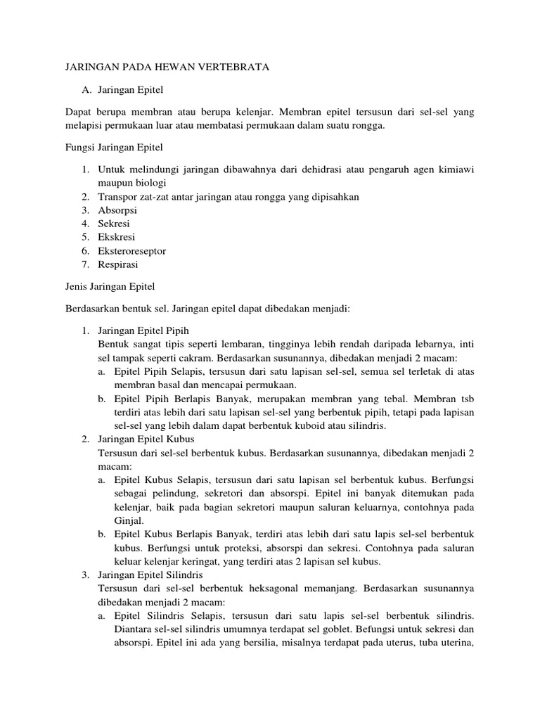 Jaringan Hewan Vertebrata Jaringan Epitel