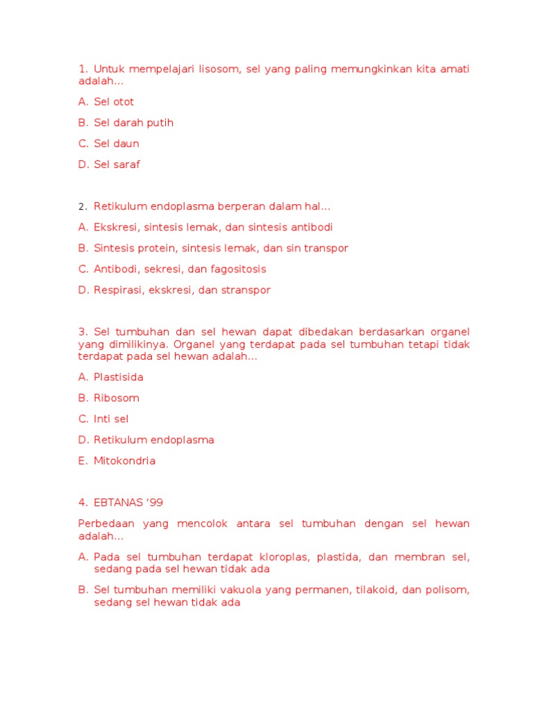 Soal Dan Pembahasan Bab Struktur Sel Kelas Xii Ipa Cerita Cantik