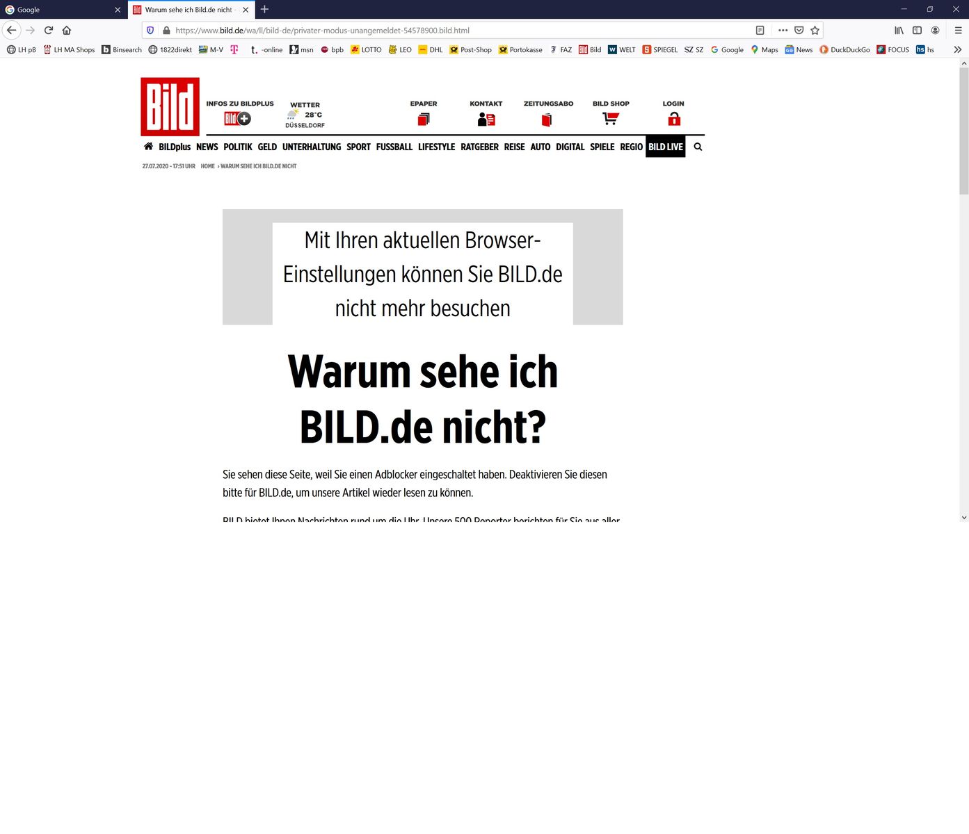 Den möchte ich euch nicht vorenthaltenpic.twitter.com/1rp6xv08wc. C) findet ihr dieses problem unlösbar? Warum sehe ich bild.de nicht. Bildsmart ist ein (beinahe) werbefreier anleitung zum umgehen von „warum sehe ich bild.de nicht? zuerst installiert ihr die erweiterung ghostery.